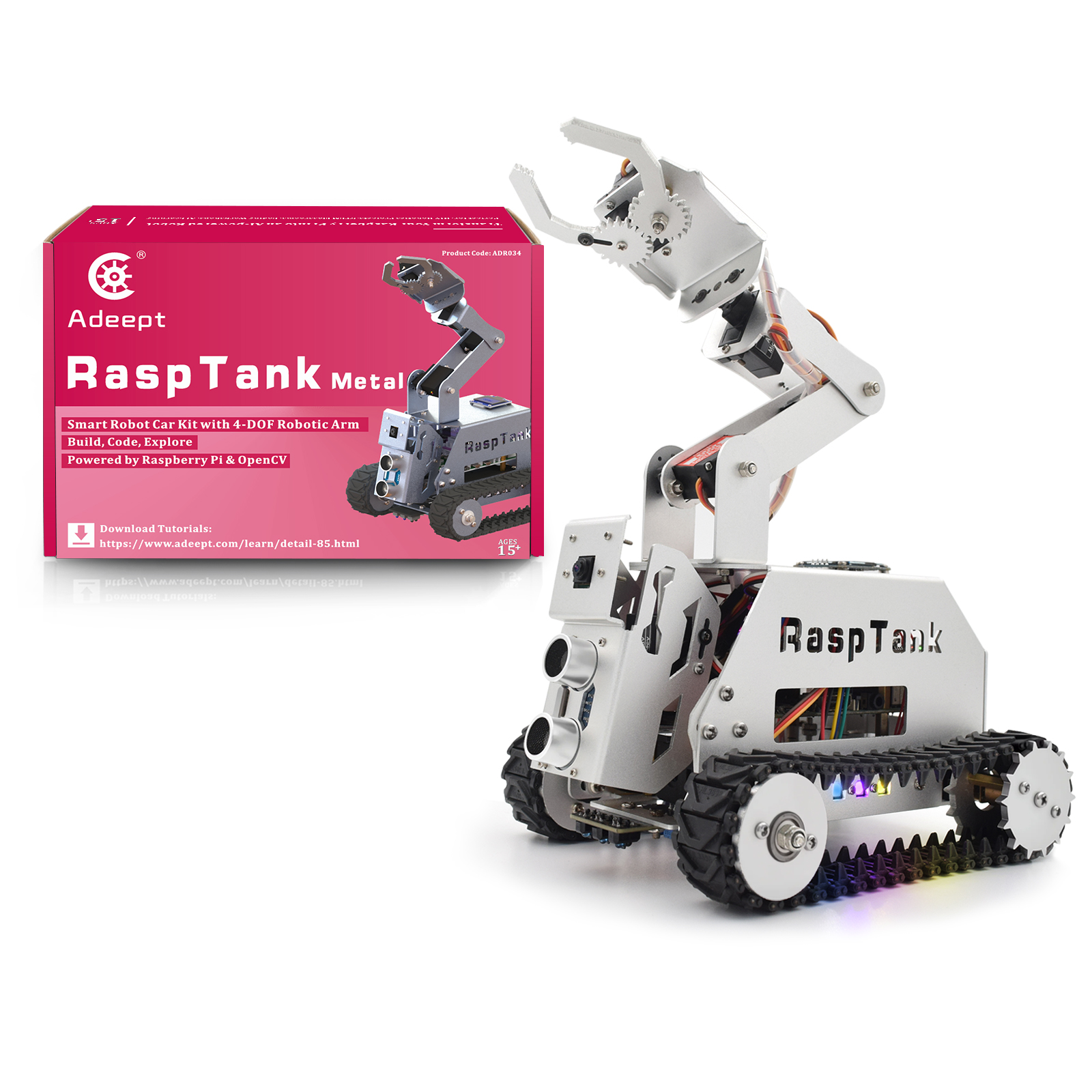 • 4-DOF robotic arm & Aluminum alloy tracked chassis kit;